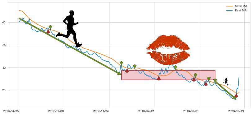 2016-04-25至2018-02-14 慢线与快线呈空头排列, 慢线与快线接触少,无缠绕