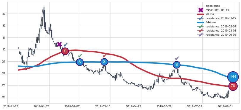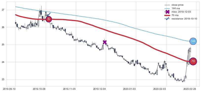 ⚁ MA60和MA90走势平行,且始终保持在短距离内,MA120始终在短中期均线上方,与短中期均线保持一定的距离,微微下行
