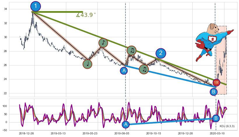➣ 2018-12-24-2020-03-11下跌趋势存在反转上涨[机会],其原下跌趋势的阻力位(23.22)已被突破[强支撑信号],原下跌趋势角度: 43.9˚