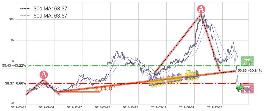 ♘ 阻力价格位55.43,可信任强度55.57%,距离最后交易2020-03-13形成的收盘价格38.70相差 +43.22%