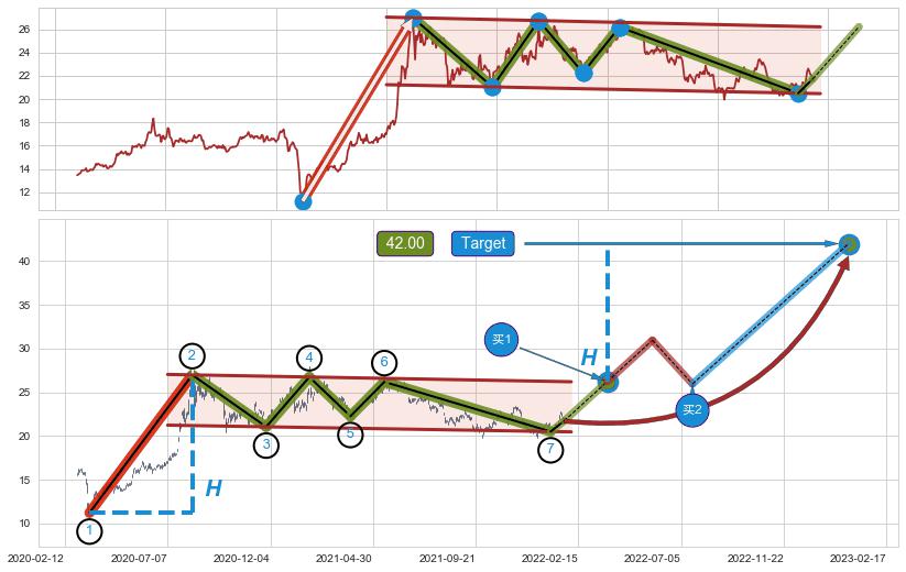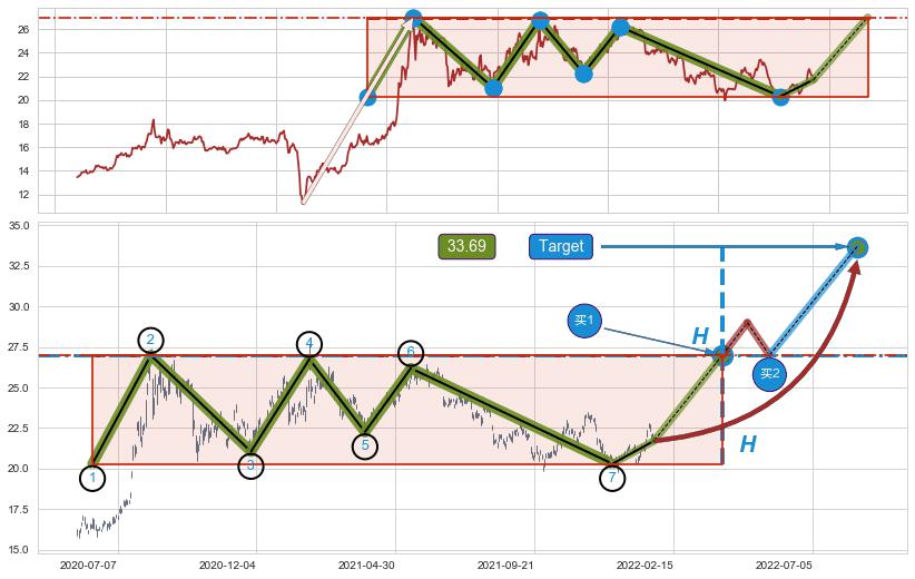 ➣ 最小中继整理涨幅→𝐇: 15.78 (𝐇旗杆的长度:旗杆起点→顶点)