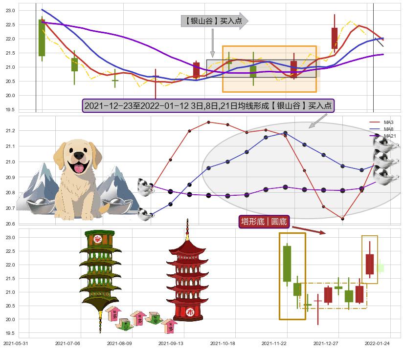 ♘ 支撑价格位21.28,可信任强度69.38%,距离最后交易2022-01-26形成的收盘价格21.72相差 -2.02%