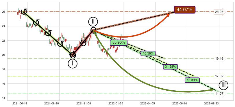 ➣ 循环浪继续向下【平均值】位置(2022-06-29, 17.02),匹配聚类样本比例57.18%, 可能性概率31.98%