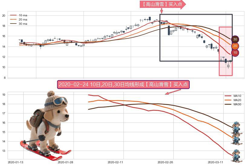 形态多维评估: ⚀ 2020-01-31日-2020-03-13日显现 10日-20日-30日均线 【高山滑雪】买入点 看多信号,后市看涨,买入