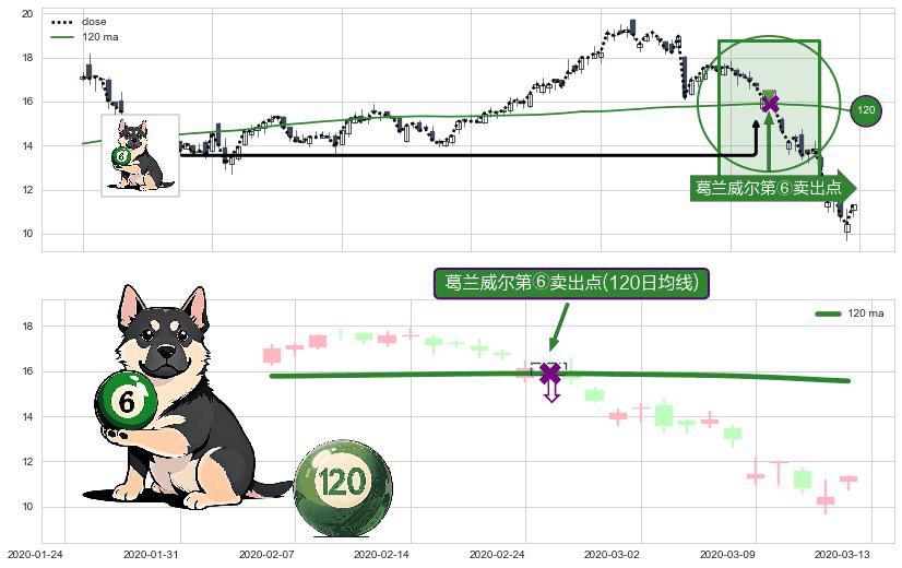 ⚁ 120日均线 第⑥卖出点 属于 均线逆转 信号,属于趋势运行的【异态】即信号期望为上涨转折的顶部