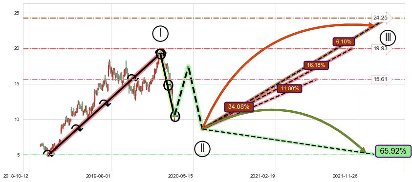 ➣ D点拟合预测价格29.04,距离最后交易收盘价格11.35相差 +155.89%