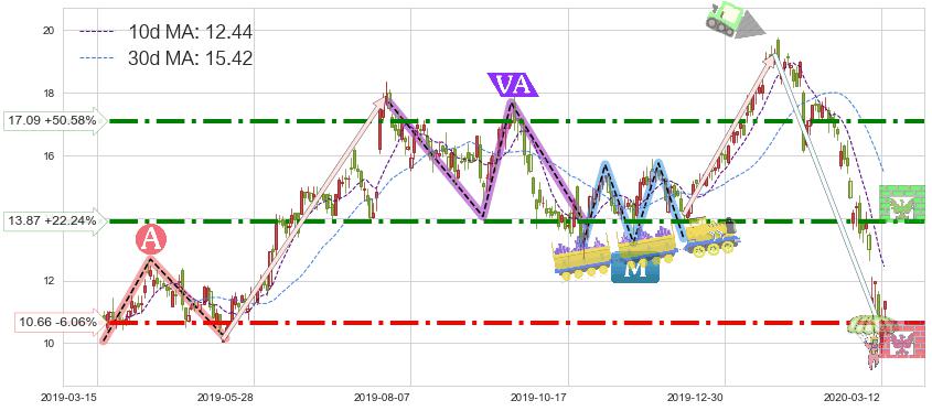 ♘ 支撑价格位10.66,可信任强度71.50%,距离最后交易2020-03-13形成的收盘价格11.35相差 -6.06%