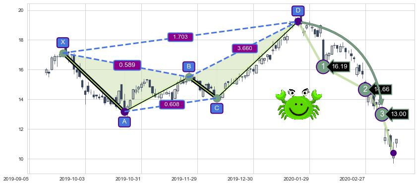 ➣ 已完成【螃蟹】形态起点X: 2019-09-23, 终点D: 2020-01-23, 共85交易日