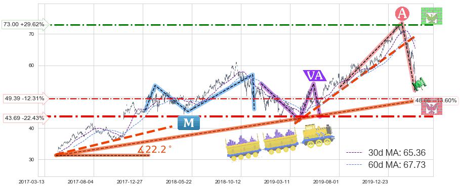 ♘ 支撑价格位49.39,可信任强度52.33%,距离最后交易2020-03-13形成的收盘价格56.32相差 -12.31%