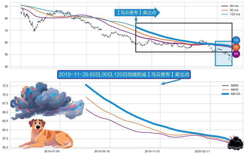 形态多维评估: ⚀ 2019-08-14日-2020-03-13日显现 60日-90日-120日均线 【乌云密布】卖出点 看空信号,后市看跌,卖出