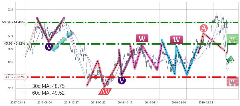 ♘ 支撑价格位39.62,可信任强度94.19%,距离最后交易2020-03-13形成的收盘价格43.72相差 -9.37%