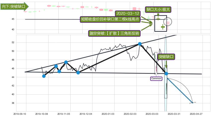 ➢ 【卖1】: 激进型 卖点→(2020-03-12: 44.79 )形成突破【扩散】三角形反转【反转】形态