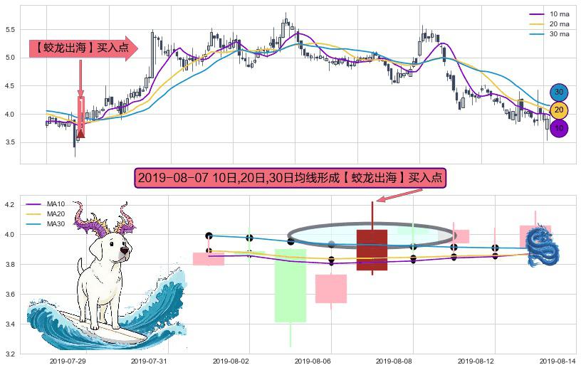 ⚀ 2019-08-07日显现 10日-20日-30日均线 【蛟龙出海】买入点 看多信号,后市看涨,买入