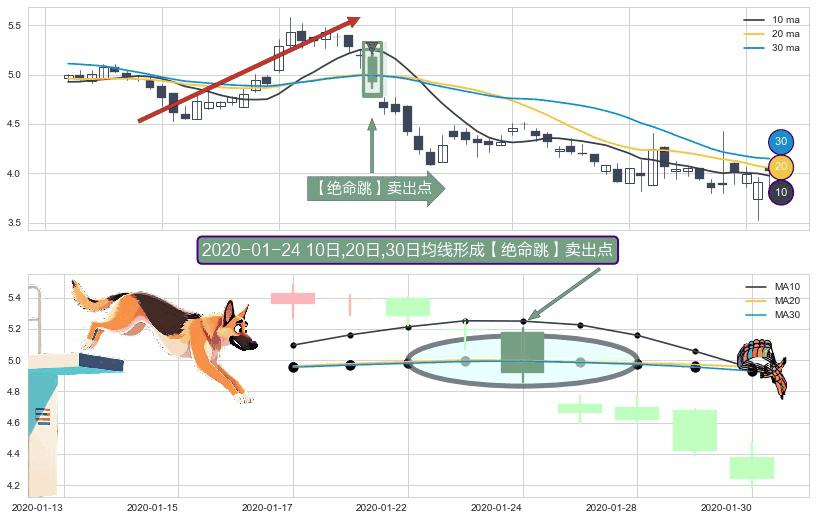 ⚀ 2020-01-24日显现 10日-20日-30日均线 【绝命跳】卖出点 看空信号,后市看跌,卖出
