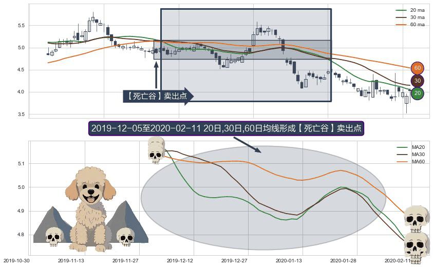 ⚀ 2019-12-06-日至2020-02-11-日显现 20日-30日-60日均线 【死亡谷】卖出点 看空信号,后市看跌,卖出