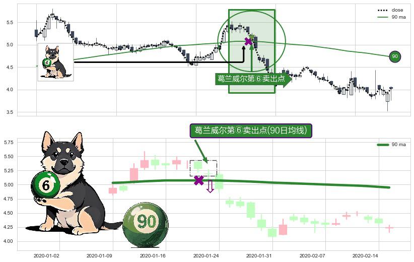 ⚀ 2020-01-23-日显现 葛兰威尔均线 90日均线 第⑥卖出点 走势反转见顶信号,后市看跌,卖出信号
