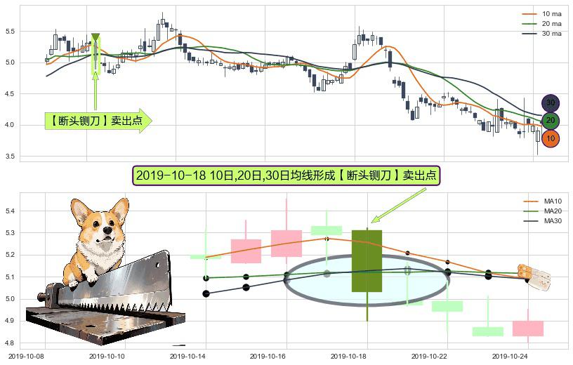⚀ 2019-10-18日显现 10日-20日-30日均线 【断头铡刀】卖出点 看空信号,后市看跌,卖出
