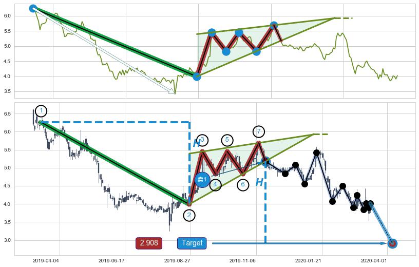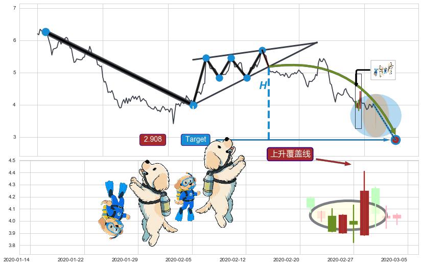 ➢ AI预测: 假定反转如期而至,第❶价格目标位置(2020-04-03, 4.55)