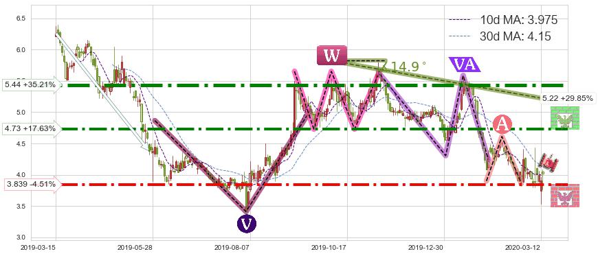 ➣ 【已确认突破】最后价格:4.02与最小【整理】第一目标价格→(2020-04-07: 2.908 )相较: 下跌空间【中等】