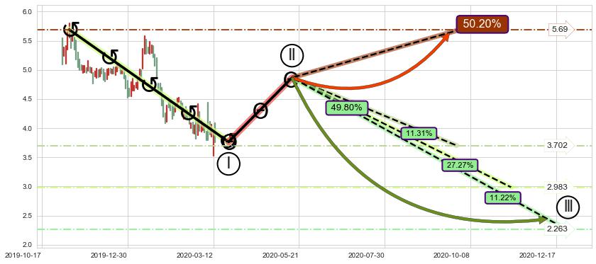 ➢ AI预测: 假定反转如期而至,第❸价格目标位置(2020-05-19, 5.69)