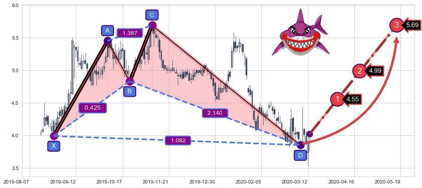 ➣ 已完成【鲨鱼】形态起点X: 2019-08-26, 终点D: 2020-03-06, 共134交易日