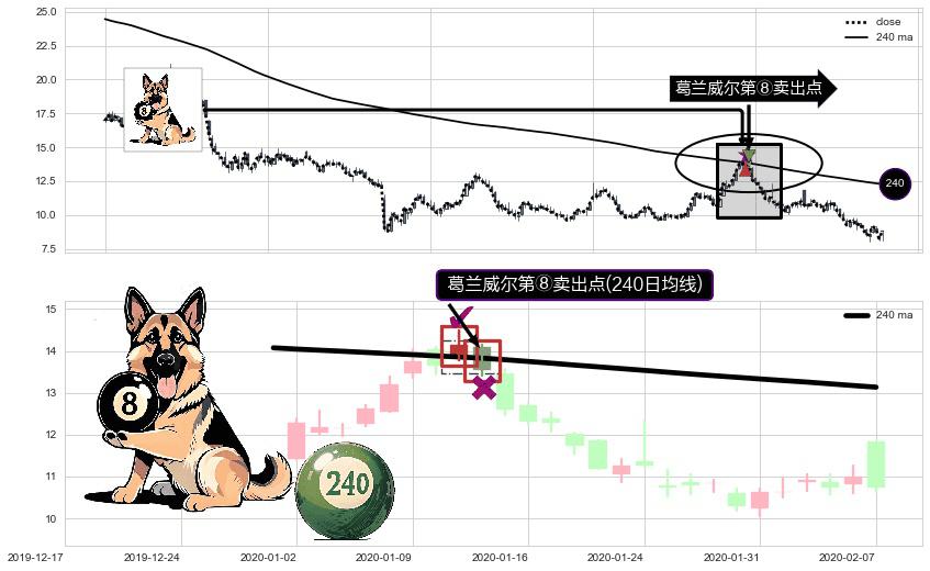 形态多维评估: ⚀ 2020-01-14-日显现 葛兰威尔均线 240日均线 第⑧卖出点 下降趋势的中继信号,后市看跌,卖出信号