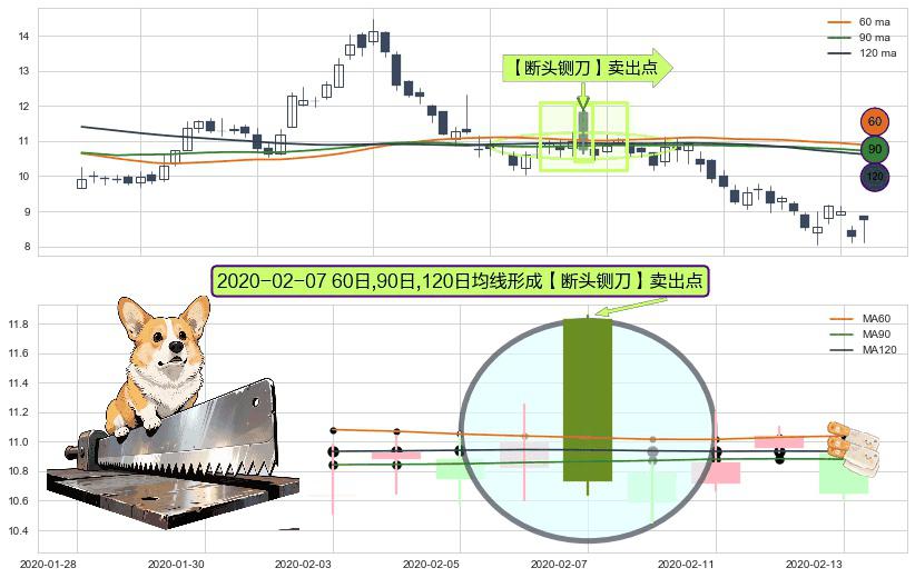 形态多维评估: ⚀ 2020-02-07日显现 60日-90日-120日均线 【断头铡刀】卖出点 看空信号,后市看跌,卖出
