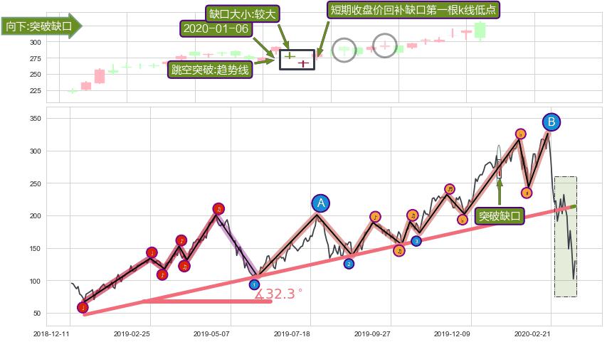 ➢ 最后的上涨趋势2018-12-24至2020-03-11:存在破位迹象,后续小调整或者反转下跌