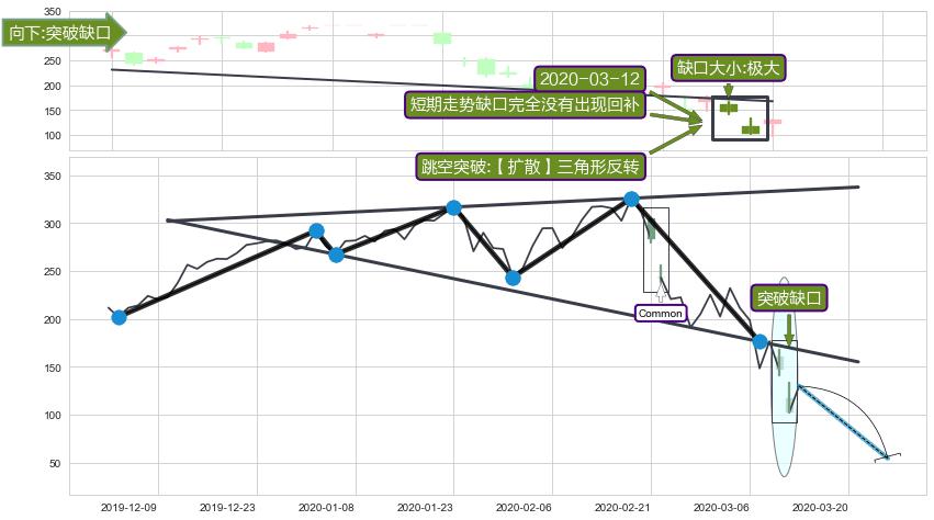 ➢ 2020-03-12形成:向下跳空【突破】缺口