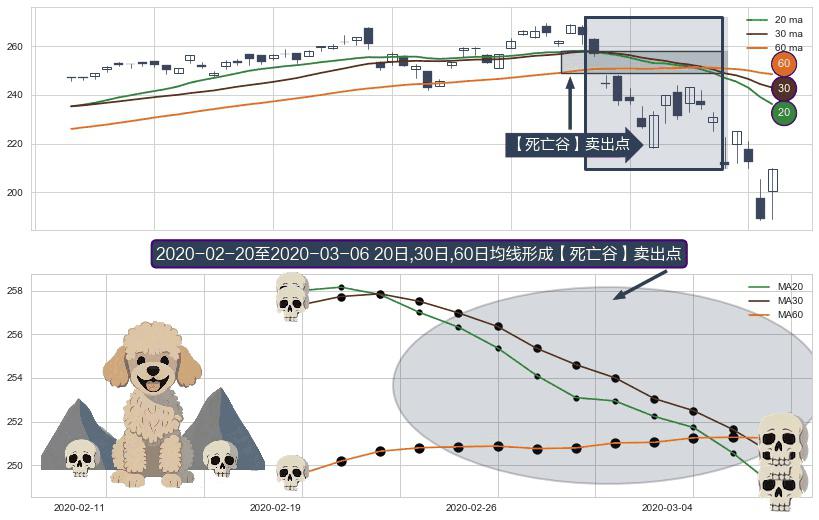 ⚀ 2020-02-21-日至2020-03-06-日显现 20日-30日-60日均线 【死亡谷】卖出点 看空信号,后市看跌,卖出