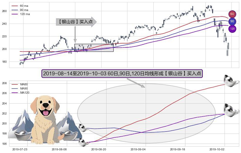 ⚀ 2019-08-15-日至2019-10-03-日显现 60日-90日-120日均线 【银山谷】买入点 看多信号,后市看涨,买入