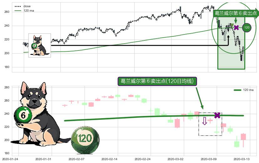 ⚀ 2020-03-05-日显现 葛兰威尔均线 120日均线 第⑥卖出点 走势反转见顶信号,后市看跌,卖出信号