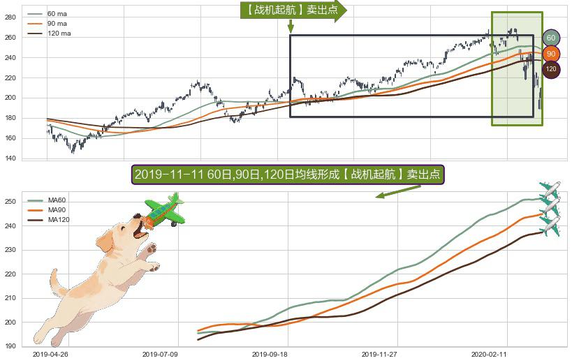 ⚀ 2019-07-22日-2020-03-05日显现 60日-90日-120日均线 【战机起航】卖出点 看空信号,后市看跌,卖出