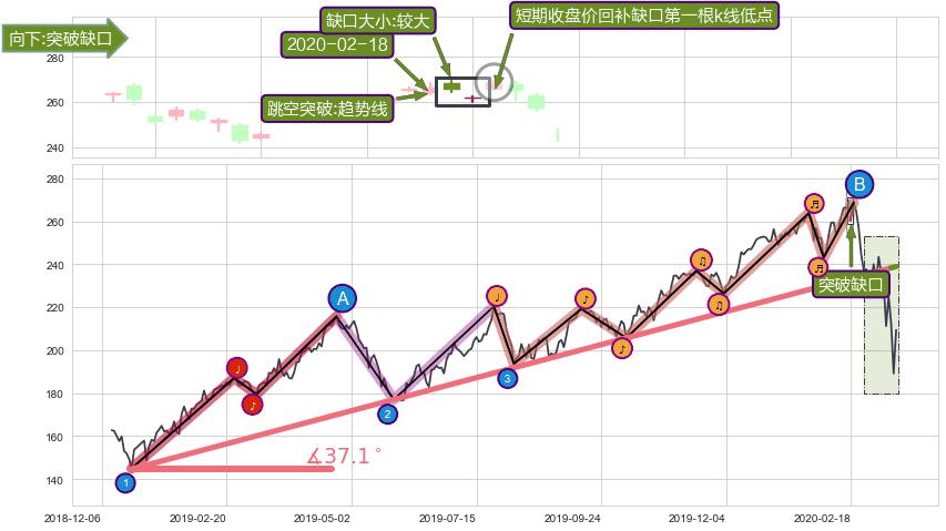 ➢ 2020-02-18形成:向下跳空【突破】缺口