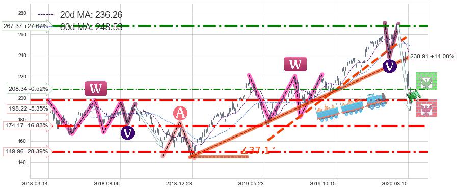 ♘ 支撑价格位198.22,可信任强度78.38%,距离最后交易2020-03-13形成的收盘价格209.42相差 -5.35%