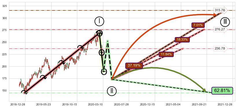 ➣ 循环浪继续向上【平均值】位置(2021-09-07, 276.27),匹配聚类样本比例49.30%, 可能性概率18.33%