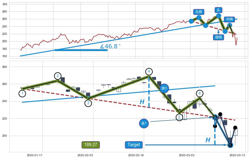 ➢ 【卖1】: 激进型 卖点→(2020-03-09: 221.51 )形成突破头肩顶【反转】形态
