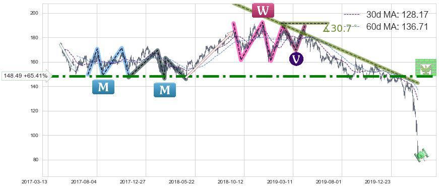 ➣ 【已达成】最小【反转】第一目标价格→(2020-03-12: 83.57 ), 后续继续【反转】下跌动力依然存在,下跌空间适中