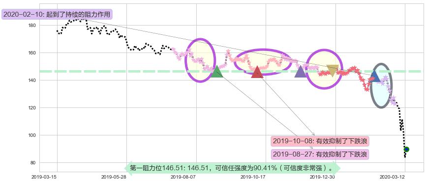 ♘ 阻力价格位146.51,可信任强度90.41%,距离最后交易2020-03-13形成的收盘价格89.77相差 +63.21%