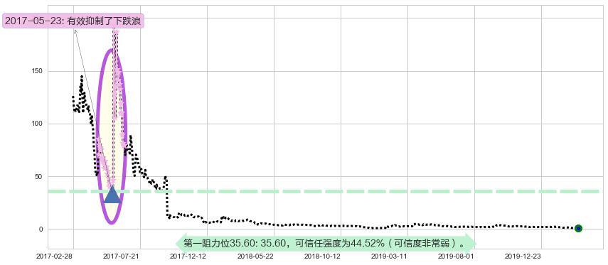 2017-05-23: 第一阻力位35.60有效抑制了下跌浪,成功阻止了价格的继续下跌。