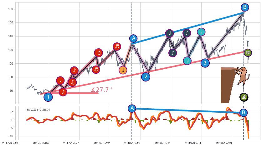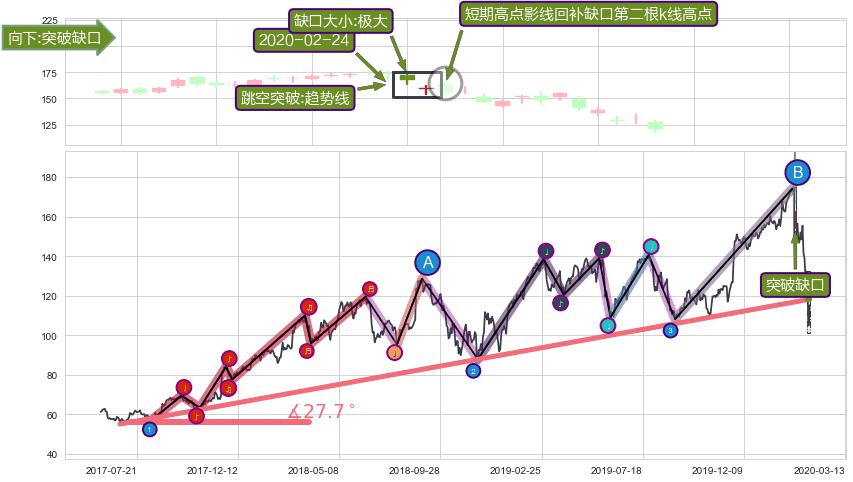 ➢ 最后的上涨趋势2017-06-27至2020-03-11:存在破位迹象,后续小调整或者反转下跌