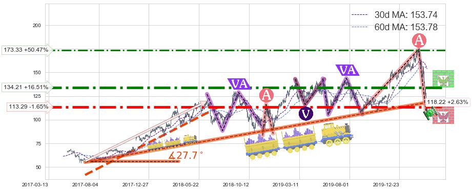 ♘ 阻力价格位173.33,可信任强度56.18%,距离最后交易2020-03-13形成的收盘价格115.19相差 +50.47%