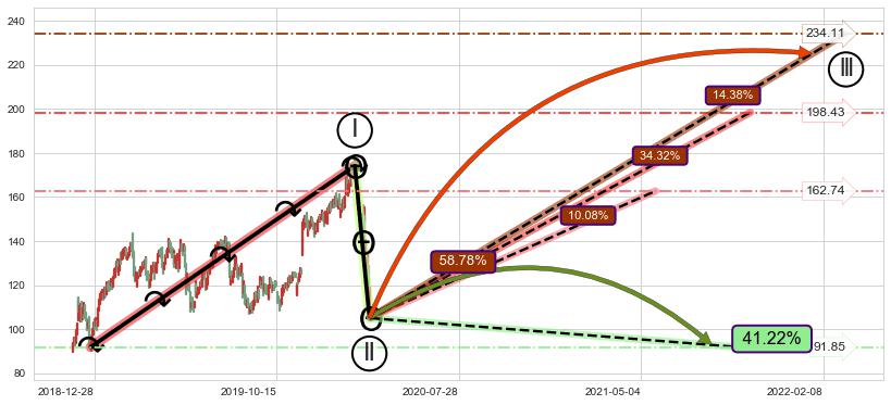 ➢ 循环浪继续向上【最高】位置(2022-03-14, 234.11),匹配聚类样本比例24.46%, 可能性概率14.38%