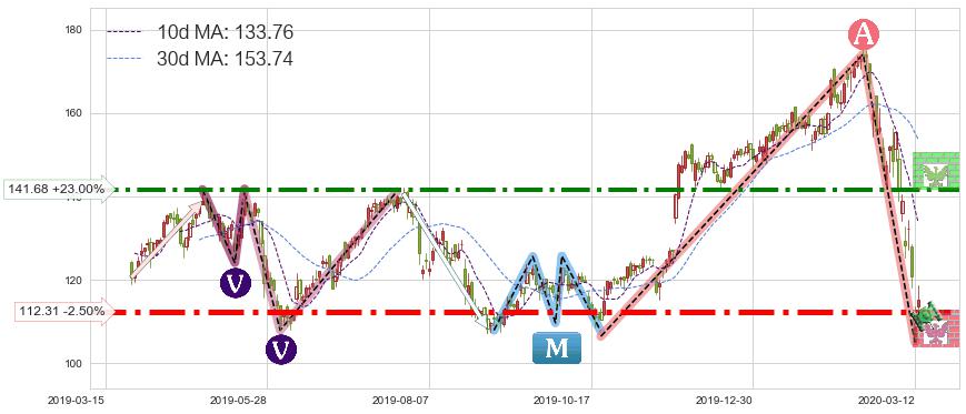 ♘ 阻力价格位141.68,可信任强度79.75%,距离最后交易2020-03-13形成的收盘价格115.19相差 +23.00%