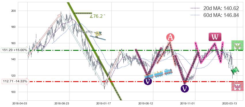 ♘ 阻力价格位151.29,可信任强度57.78%,距离最后交易2020-03-13形成的收盘价格131.56相差 +15.00%