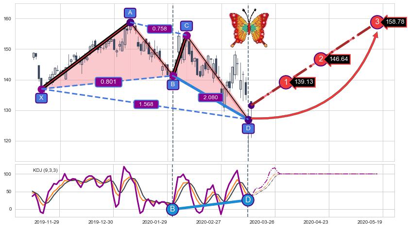 ➣ 已完成【蝴蝶】形态起点X: 2019-11-19, 终点D: 2020-03-12, 共78交易日