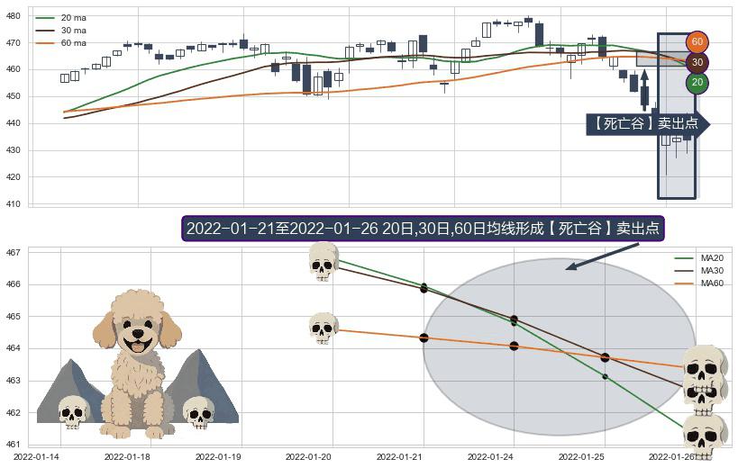 ⚀ 2022-01-24-日至2022-01-26-日显现 20日-30日-60日均线 【死亡谷】卖出点 看空信号,后市看跌,卖出