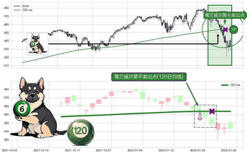 ⚀ 2022-01-19-日显现 葛兰威尔均线 120日均线 第⑥卖出点 走势反转见顶信号,后市看跌,卖出信号