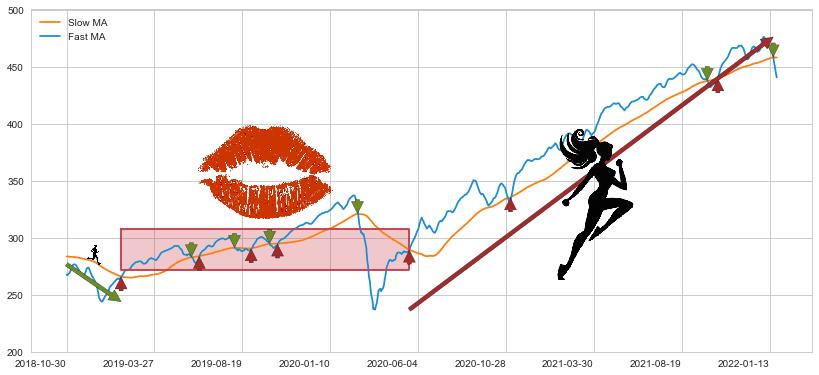 2018-07-10至2019-01-31 慢线与快线呈空头排列, 慢线与快线接触少,无缠绕