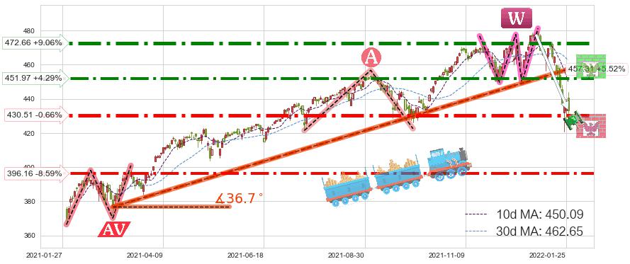 ♘ 阻力价格位472.66,可信任强度93.26%,距离最后交易2022-01-26形成的收盘价格433.38相差 +9.06%